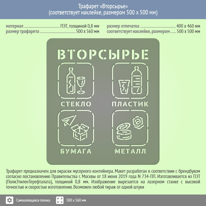 Трафарет «Вторсырье» (соответствует наклейке, размером 500х500 мм) в Черкесске купить