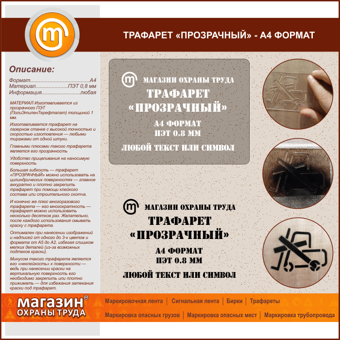Трафарет «ПРОЗРАЧНЫЙ» (А4 формат, ПЭТ 0,8 мм) в Черкесске купить