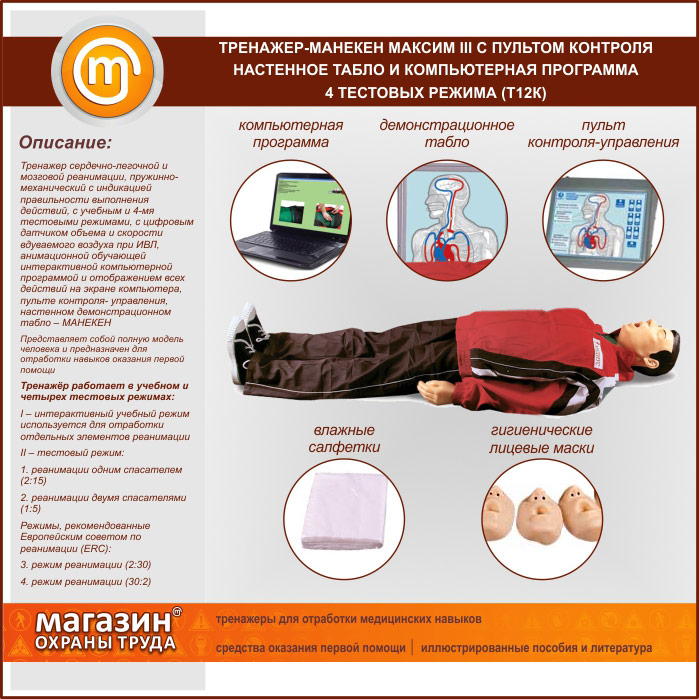 Тренажер-манекен «Максим» III с пультом контроля, настенным табло и компьютерной программой, 4 тестовых режима (Т12К)