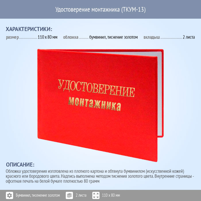 Бланк удостоверения монтажника (ТКУМ-13) в Черкесске купить