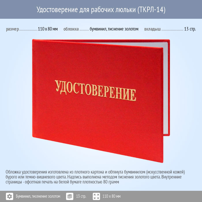 Бланк удостоверения для рабочих люльки (ТКРЛ-14) в Черкесске купить