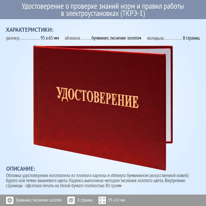 Бланк удостоверения о проверке знаний норм и правил работы в электроустановках (новый образец 2021 года) (ТКРЭ-1) в Черкесске купить