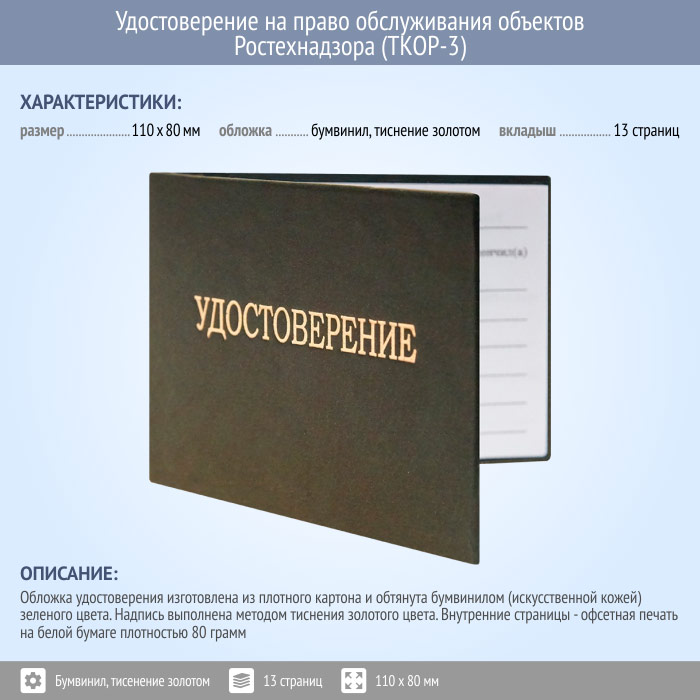Бланк удостоверения на право обслуживания объектов Ростехнадзора (ТКОР-3) в Черкесске купить