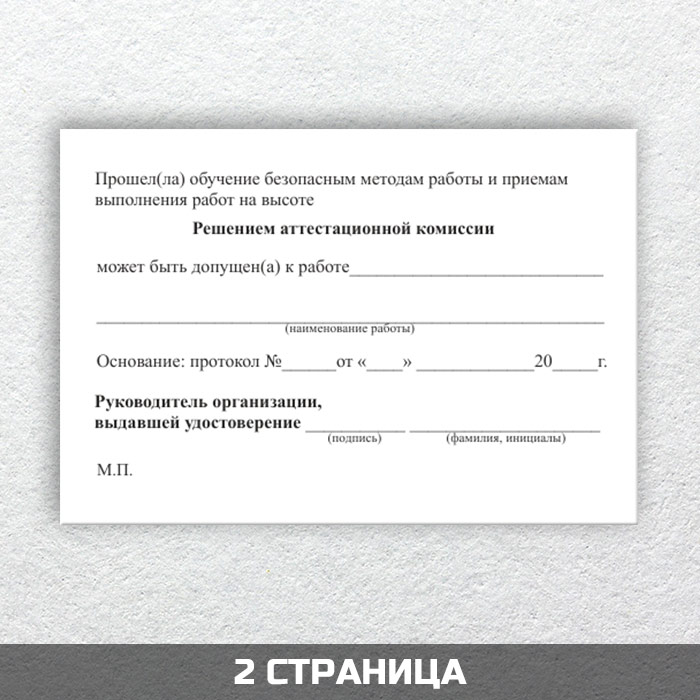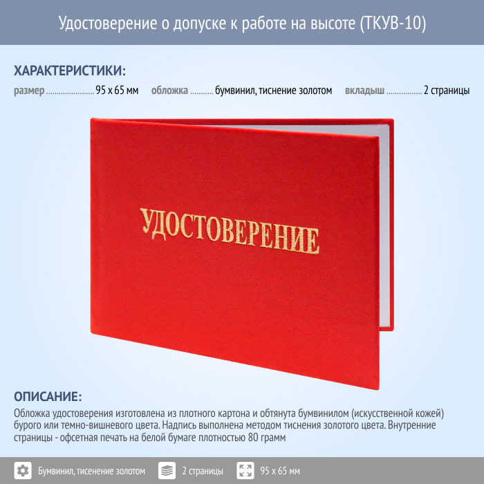 Бланк удостоверения о допуске к работе на высоте (ТКУВ-10) в Черкесске купить