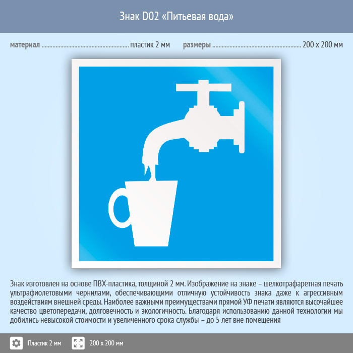 Знак D02 «Питьевая вода» (пластик, 200х200 мм) в Черкесске купить