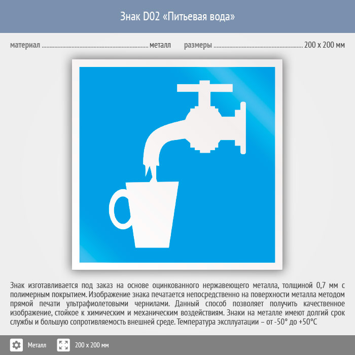 Знак D02 «Питьевая вода» (металл, 200х200 мм) в Черкесске купить
