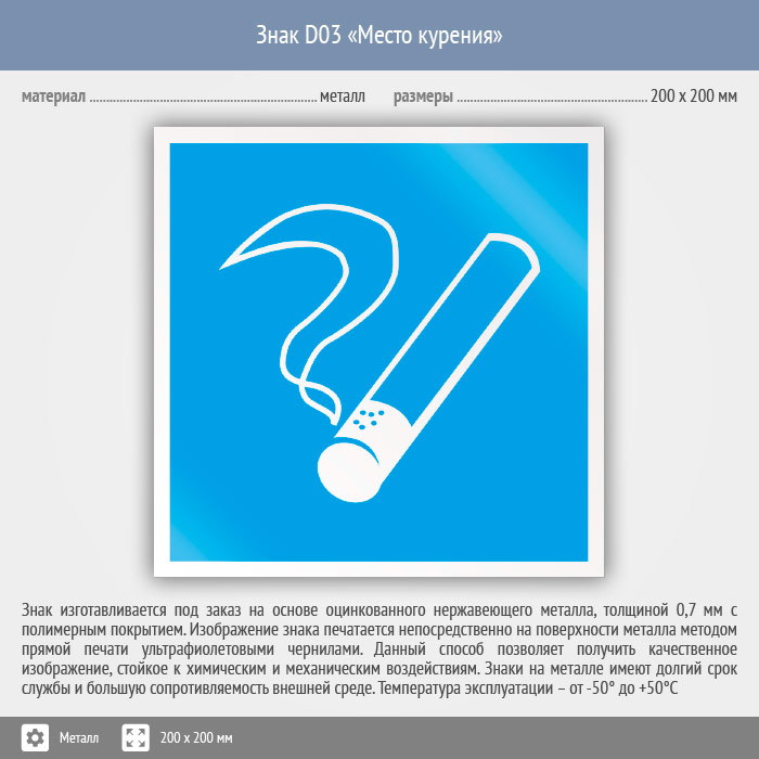Знак D03 «Место курения» (металл, 200х200 мм) в Черкесске купить