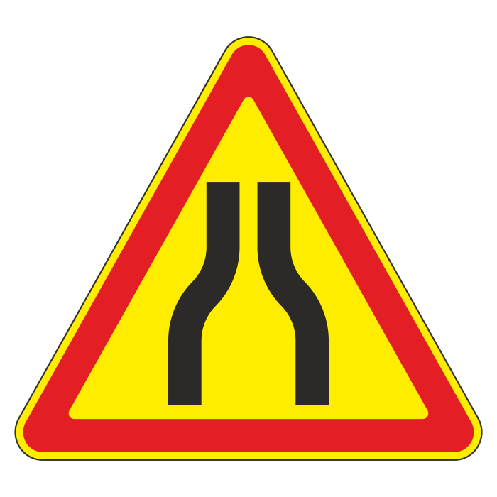 Дорожный знак 1.20.1 «Сужение дороги» (временный) (металл 0,8 мм, III типоразмер: сторона 1200 мм, С/О пленка: тип Б высокоинтенсивная) в Черкесске купить