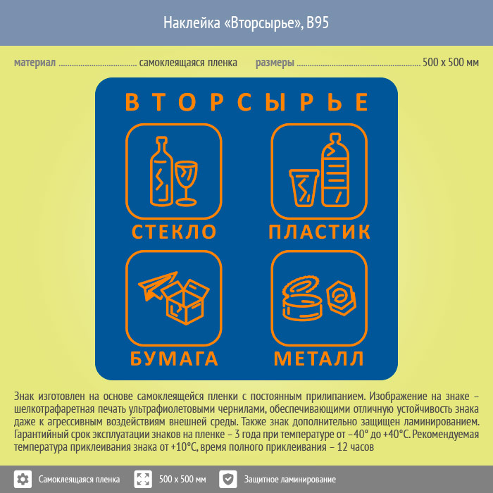 Наклейка на бак «Вторсырьё», B95 (пленка c ламинированием, 500х500 мм) в Черкесске купить