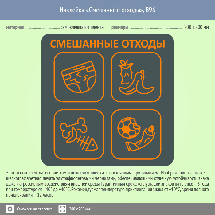 Наклейка на бак «Смешанные отходы», B96 (пленка, 200х200 мм) в Черкесске купить