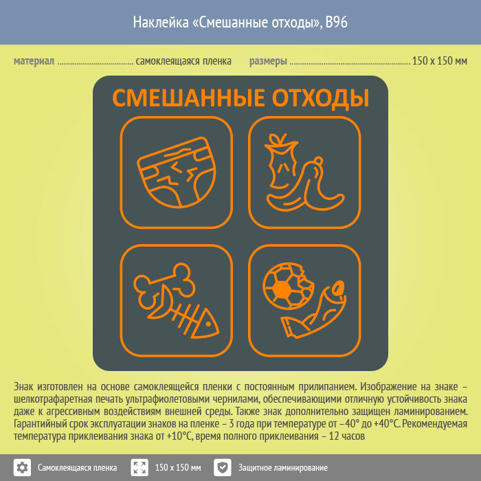 Наклейка на бак «Смешанные отходы», B96 (пленка c ламинированием, 150х150 мм) в Черкесске купить