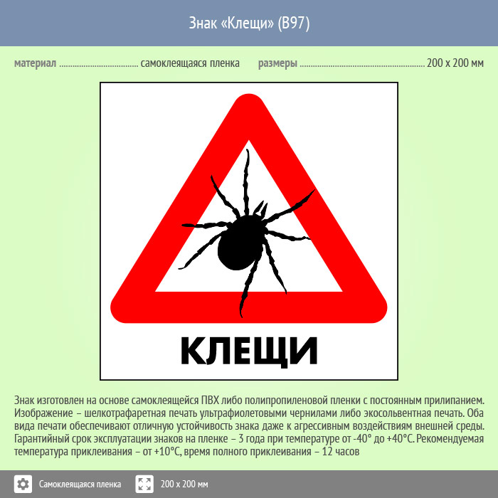 Знак «Клещи», B97 (пленка, 300х300 мм) в Черкесске купить