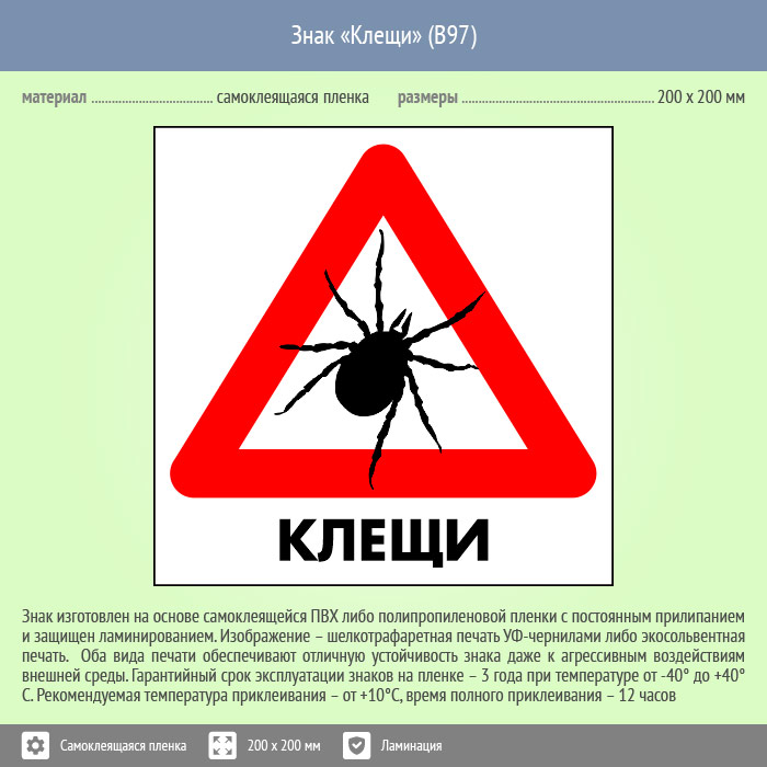 Знак «Клещи», B97 (пленка c ламинированием, 300х300 мм) в Черкесске купить