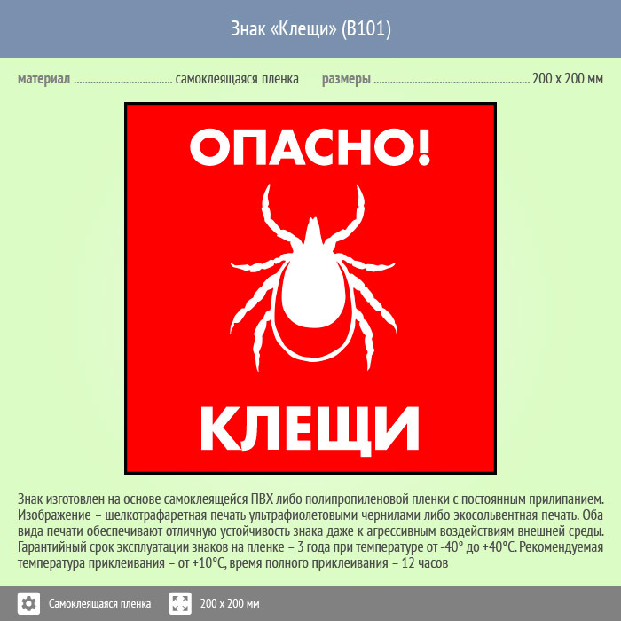 Знак «Опасно! Клещи», B101 (пленка, 200х200 мм) в Черкесске купить