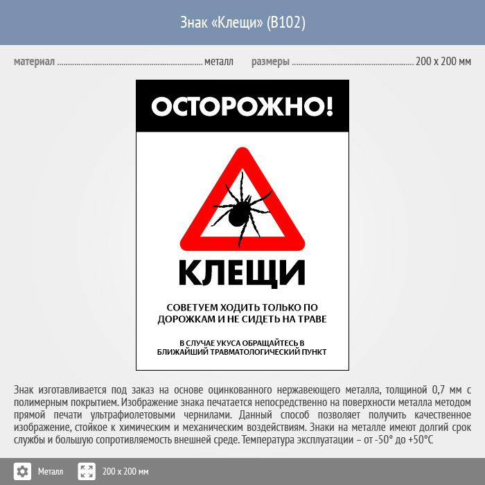 Знак «Осторожно! Клещи», B102 (металл, 400х600 мм) в Черкесске купить