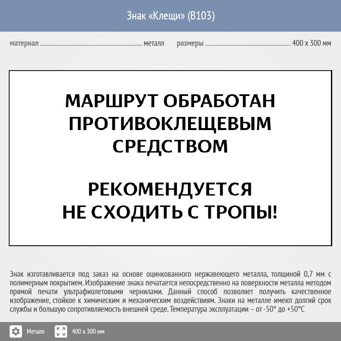 Знак «Клещи», B103 (металл, 300х200 мм) в Черкесске купить