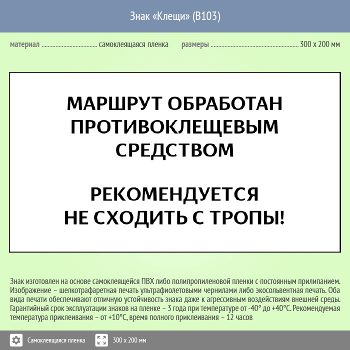Знак «Клещи», B103 (пленка, 400х300 мм) в Черкесске купить