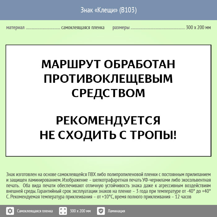 Знак «Клещи», B103 (пленка c ламинированием, 400х300 мм) в Черкесске купить