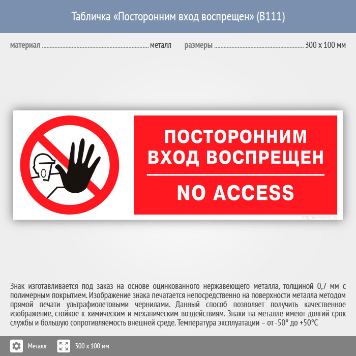 Табличка «Посторонним вход воспрещен», B111 (металл, 300х100 мм) в Черкесске купить