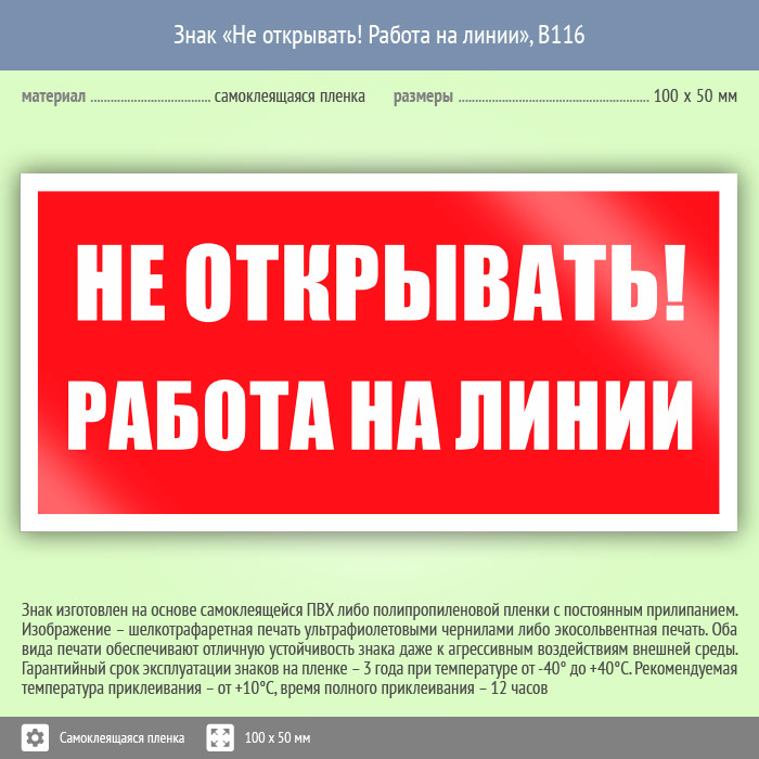 Знак «Не открывать! Работа на линии», B116 (пленка, 100х50 мм) в Черкесске купить