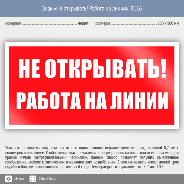 Знак «Не открывать! Работа на линии», B116 (металл, 200х100 мм) в Черкесске купить