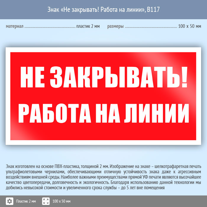 Знак «Не закрывать! Работа на линии», B117 (пластик, 100х50 мм) в Черкесске купить