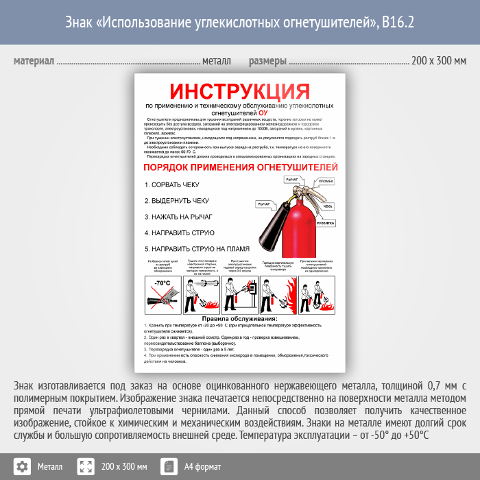 Знак «Использование углекислотных огнетушителей», B16.2 (металл, 200х300 мм) в Черкесске купить
