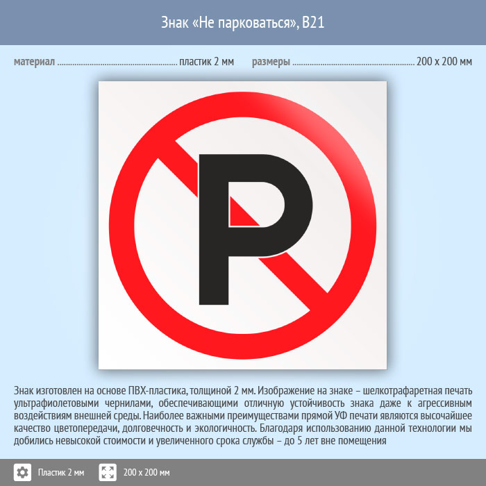 Знак «Не парковаться», B21 (пластик, 200х200 мм) в Черкесске купить