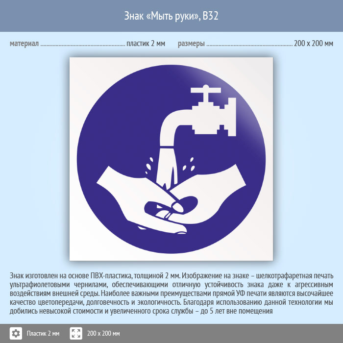 Знак «Мыть руки», B32 (пластик, 200х200 мм) в Черкесске купить