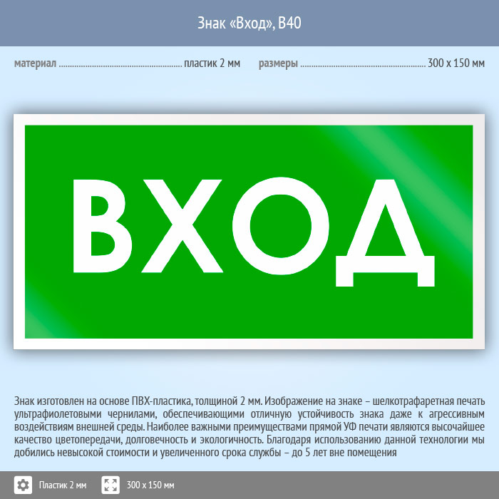 Знак «Вход», B40 (пластик, 300х150 мм) в Черкесске купить