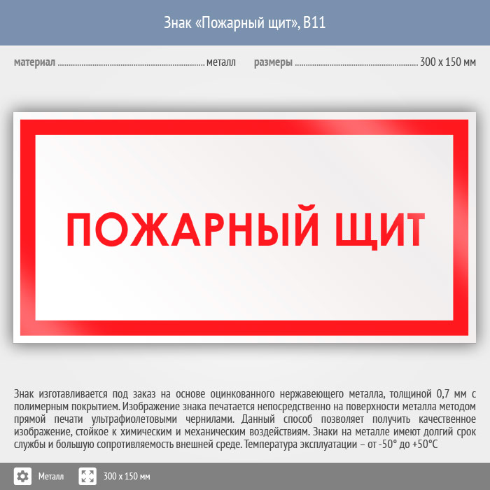 Знак «Пожарный щит», B11 (металл, 300х150 мм) в Черкесске купить