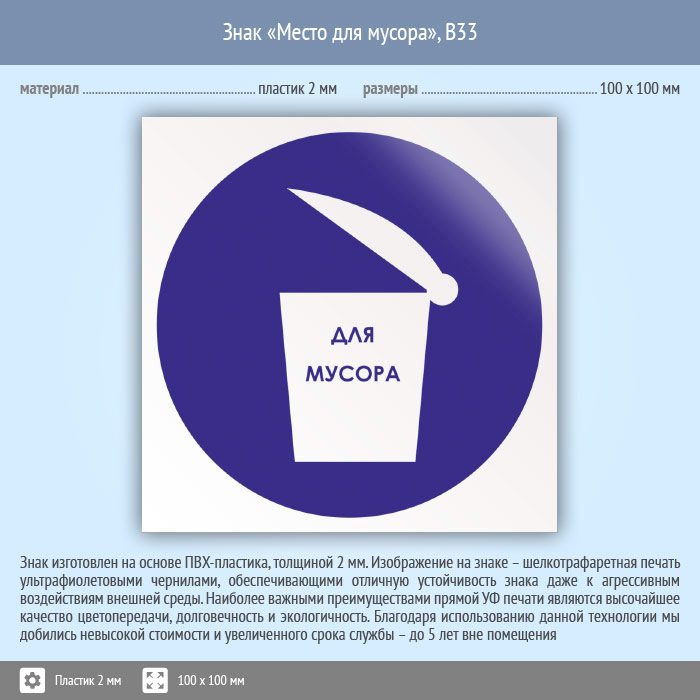 Знак «Место для мусора», B33 (пластик, 100х100 мм) в Черкесске купить