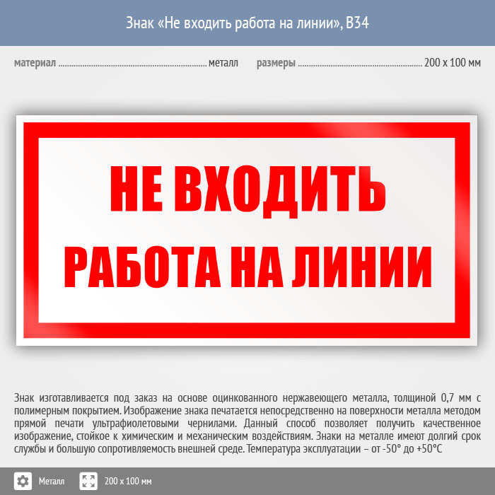 Знак «Не входить работа на линии», B34 (металл, 200х100 мм) в Черкесске купить