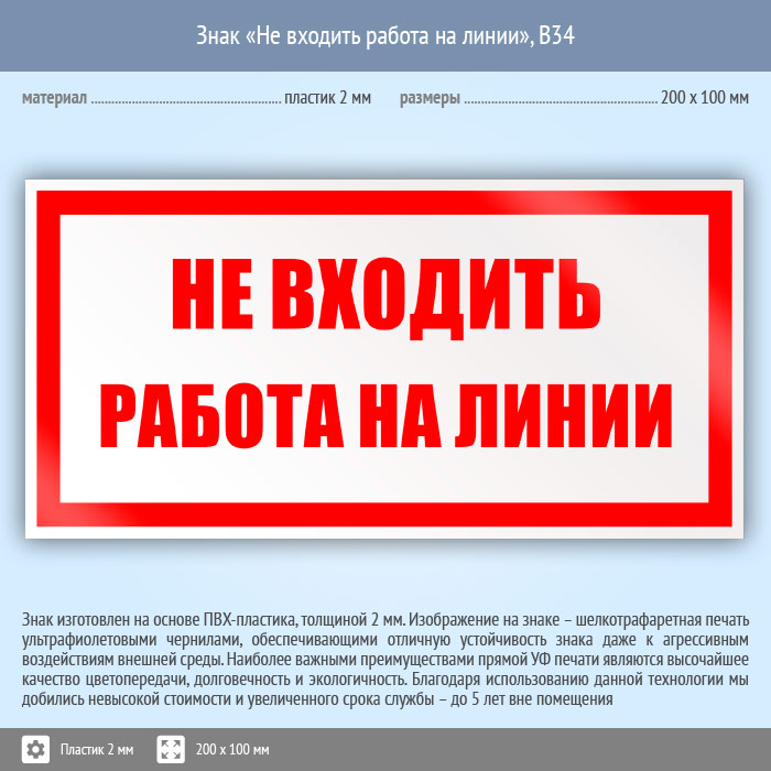 Знак «Не входить работа на линии», B34 (пластик, 200х100 мм) в Черкесске купить