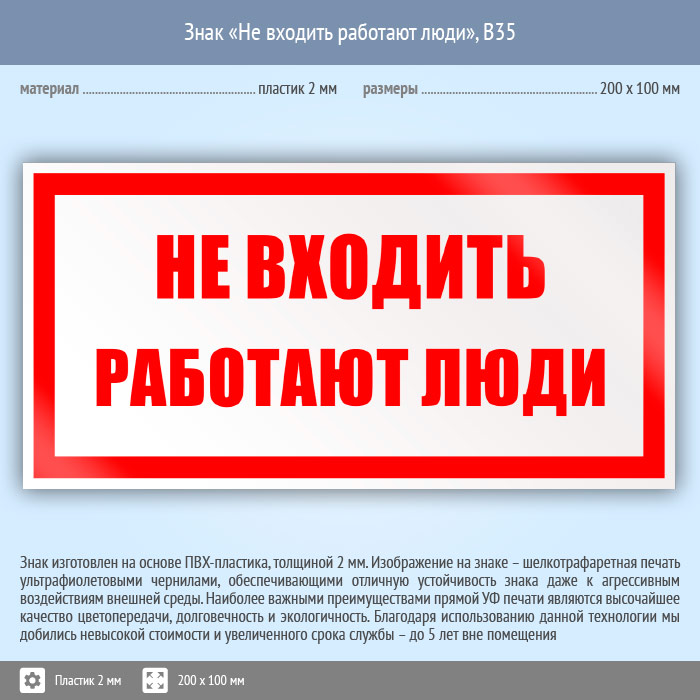 Знак «Не входить работают люди», B35 (пластик, 200х100 мм) в Черкесске купить
