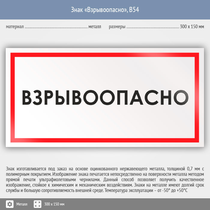 Знак «Взрывоопасно», B54 (металл, 300х150 мм) в Черкесске купить