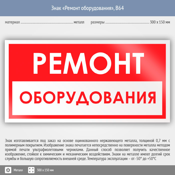 Знак «Ремонт оборудования», B64 (металл, 300х150 мм) в Черкесске купить