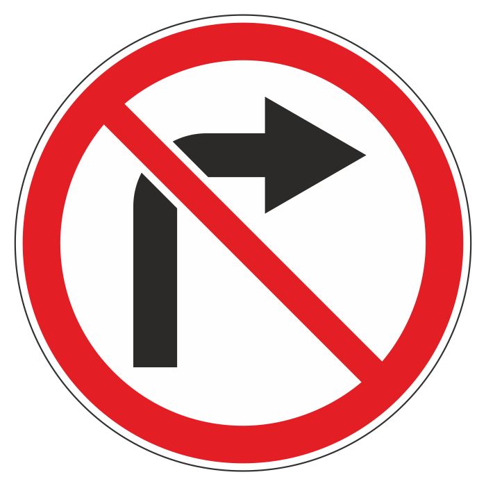Дорожный знак 3.18.1 «Поворот направо запрещен» (металл 0,8 мм, II типоразмер: диаметр 700 мм, С/О пленка: тип Б высокоинтенсивная) в Черкесске купить