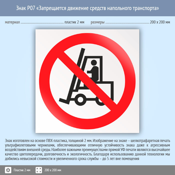 Знак P07 «Запрещается движение средств напольного транспорта» (пластик, 200х200 мм) в Черкесске купить