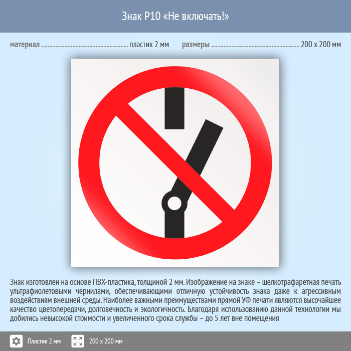 Знак P10 «Не включать!» (пластик, 200х200 мм) в Черкесске купить