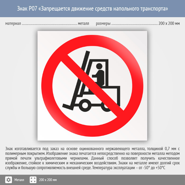 Знак P07 «Запрещается движение средств напольного транспорта» (металл, 200х200 мм) в Черкесске купить