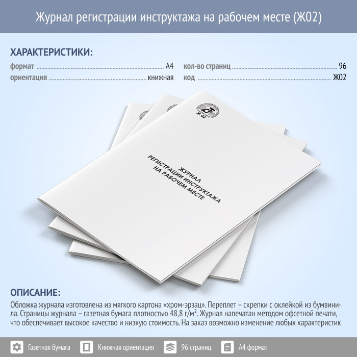 Журнал регистрации инструктажа на рабочем месте (96 стр., Ж02) в Черкесске купить