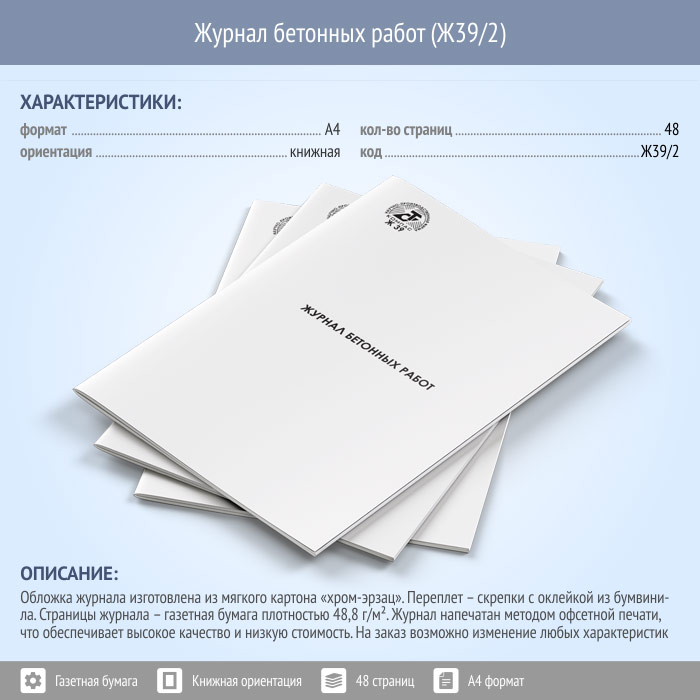 Журнал бетонных работ (48 стр., Ж39/2) в Черкесске купить