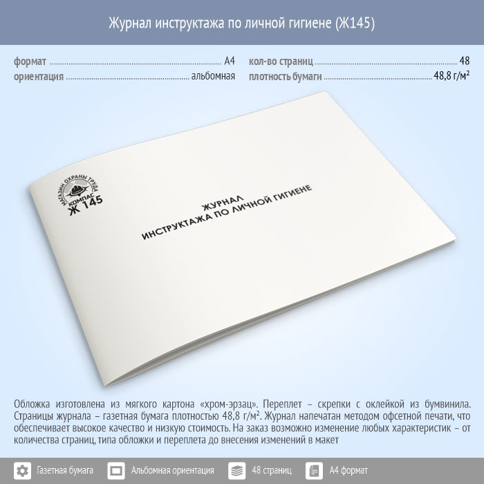 Журнал инструктажа по личной гигиене (48 стр., Ж145) в Черкесске купить