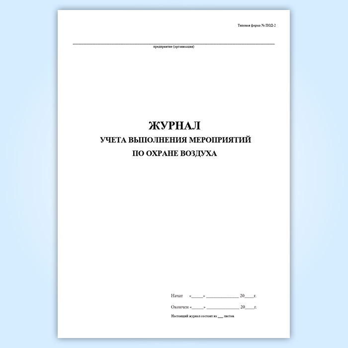 Журнал учета выполнения мероприятий по охране воздуха (форма ПОД-2) в Черкесске купить