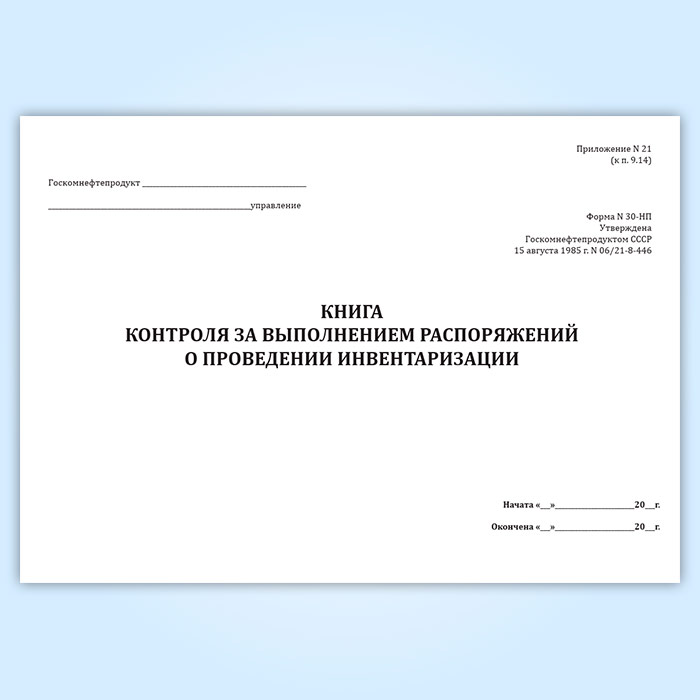 Книга контроля за выполнением распоряжений о проведении инвентаризации (форма № 30-НП) в Черкесске купить