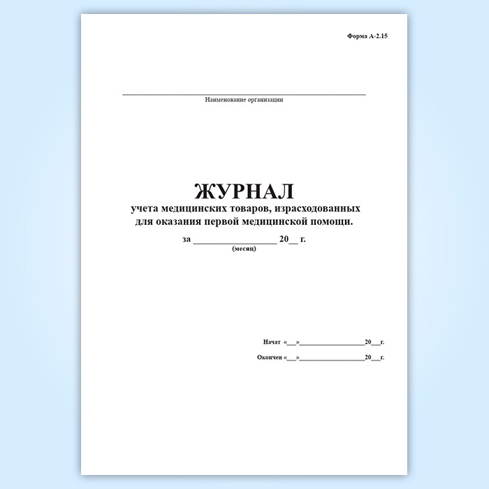 Журнал учета медицинских товаров, израсходованных для оказания первой медицинской помощи (форма А-2.15) в Черкесске купить