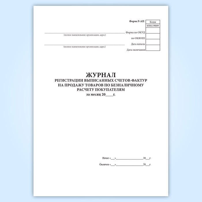Журнал регистрации выписанных счетов-фактур на продажу товаров по безналичному расчету покупателям (форма 9-АП) в Черкесске купить
