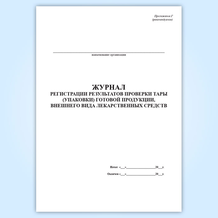 Журнал регистрации результатов проверки тары (упаковки) готовой продукции, внешнего вида лекарственных средств (форма Г) в Черкесске купить