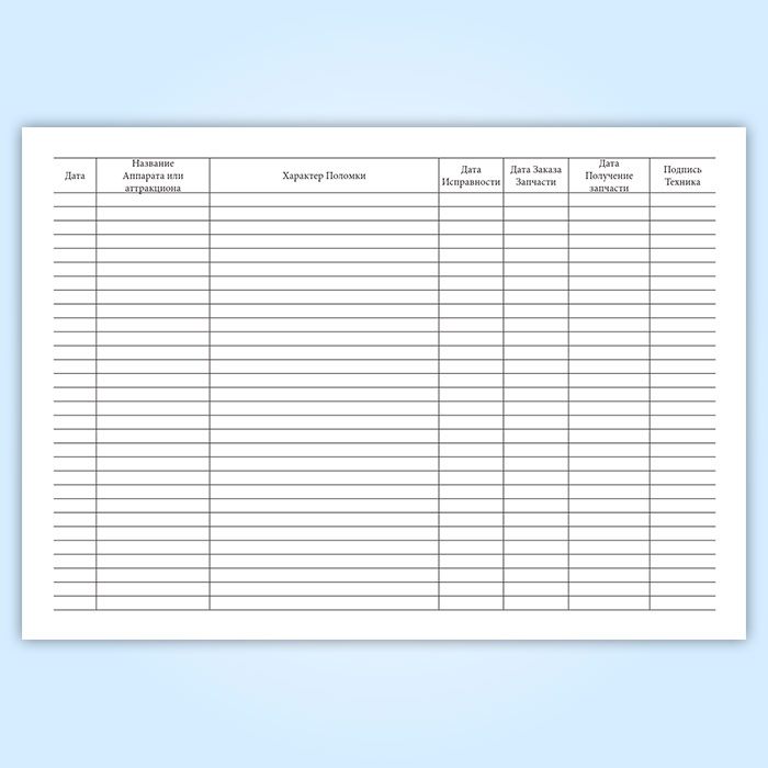 Журнал учета поломки аттракционов и игровых автоматов в Черкесске купить